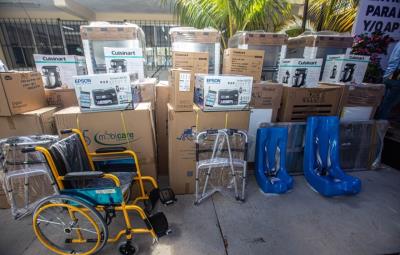 El equipamiento entregado consistió en ayudas técnicas para la movilidad, material bibliográfico, material didáctico especializado, equipo tecnológico, material para el equipamiento de los talleres laborales de los Centros de Atención Múltiple y material multisensorial en beneficio de 54 CAM, 94 USAER, 3 CRIE y 2 UAEBH.