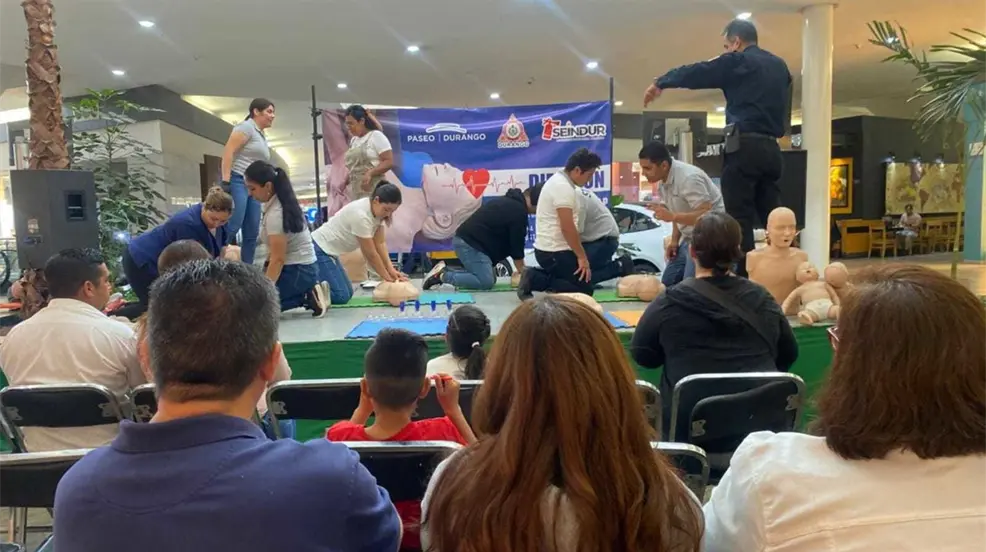 En dichas actividades se simuló un paro cardiorrespiratorio, para enseñar a la ciudadanía asistente a este evento a como reaccionar a una situación de este tipo, siendo la plaza comercial Paseo Durango la sede de estas prácticas.