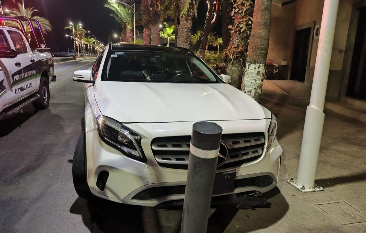 LA PAZ, Baja California Sur.– Un nuevo incidente vial tuvo lugar en la madrugada de este jueves en la ciudad de La Paz. Un joven de 22 años, bajo los efectos del alcohol, perdió el control de su vehículo y se estrelló contra una barrera de protección en el concurrido parque Cuauhtémoc, ubicado en las calles Álvaro Obregón, entre Nicolás Bravo y Rosales.