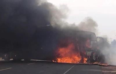 SANTIAGO MARAVATIO, Guanajuato.- En respuesta al operativo en el que fueron abatidos ocho presuntos sicarios, delincuentes incendiaron un camión de pasajeros y colocaron ponchallantas, sin que se reportaran lesionados.