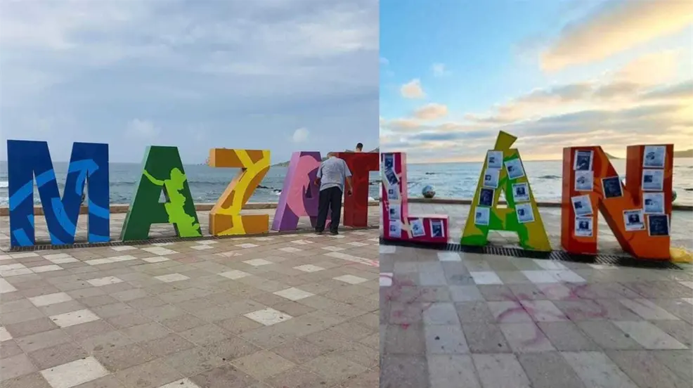 Las letras de Mazatlán fueron usadas para colocar los carteles de búsqueda de las personas desaparecidas tras la ola de violencia en Sinaloa, al día siguiente las letras se encontraban sin carteles..