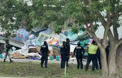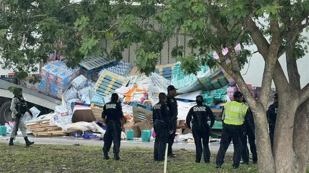 Agentes de la SSP y la Guardia Nacional acudieron inmediatamente para acordonar el área y frenar la rapiña que realizaban las personas. También atendieron la situación del accidente para el deslinde de responsabilidades.