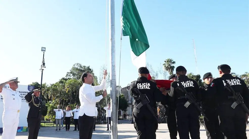 YUCATAN.- Con motivo de la conmemoración del inicio de la Revolución Mexicana, el gobernador de Yucatán, Mauricio Vila Dosal, realizó el izamiento de la bandera mexicana para abrir con las actividades que se realizan en el estado por el 113 aniversario de la lucha revolucionaria.