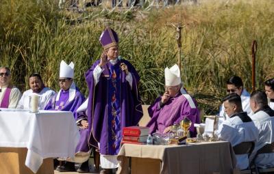 que han perdido la vida en su intento de cruzar la frontera.El obispo de Ciudad Juárez, José Guadalupe Torres Campos, destacó que la misa se celebra principalmente para honrar a los migrantes fallecidos durante su travesía hacia la frontera. La celebración se realizó en la mañana, con un altar colocado a la mitad del río que divide a México y Estados Unidos, simbolizando la unión entre ambos lados.