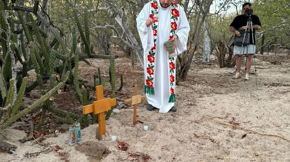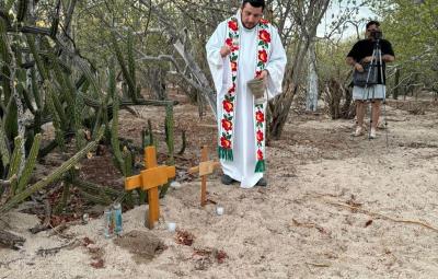 LA PAZ, Baja California Sur.- En marco del Día Internacional de las Víctimas de Desaparición Forzada, el colectivo Búsqueda x la Paz organizó una emotiva misa en el "panteón" clandestino del Cajoncito, un lugar que ha sido crucial en la identificación de víctimas de desaparición forzada en la región. La misa, fue dirigida por el padre Alonso.