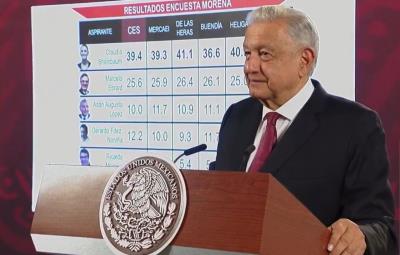 CIUDAD DE MÉXICO.- El presidente López Obrador señaló que tras conocer los resultados de la encuesta de Morena que favoreció a Claudia Sheinbaum hará entrega del bastón de mando a la ex jefa del gobierno capitalino.