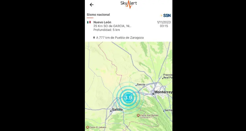 Reporta SSN sismo a 25 km al suroeste de García, Nuevo León, sentido en Saltillo