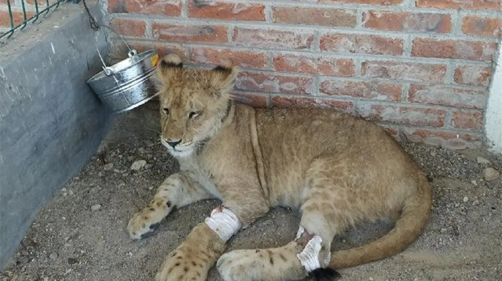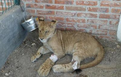 El cachorro de león africano fue trasladado a un PIMVS para recibir el cuidado y la recuperación adecuados.