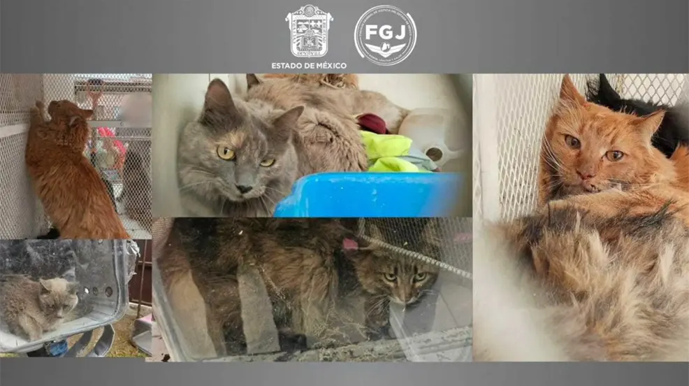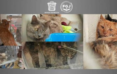 TECÁMAC, Estado de México.- La Fiscalía General de Justicia del Estado de México en conjunto con autoridades de la Procuraduría de Protección al Medio Ambiente del estado de México, Protección Civil y Bomberos así como de Control Animal del municipio de Tecámac, rescataron a nueve felinos que se encontraban en situación de abandono en un inmueble de esta demarcación.