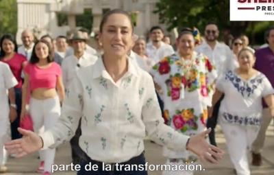 Acompañada de diversas personas, Sheinbaum hizo un llamado en su spot a seguir construyendo “el mejor México posible”.