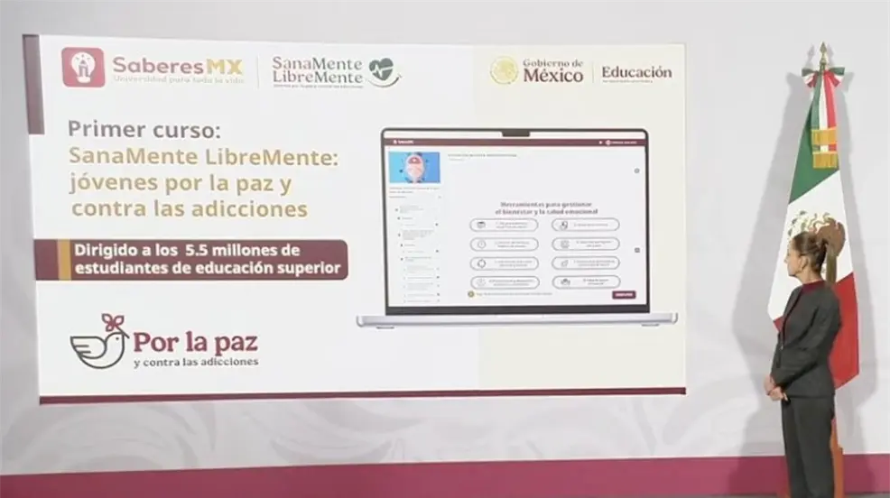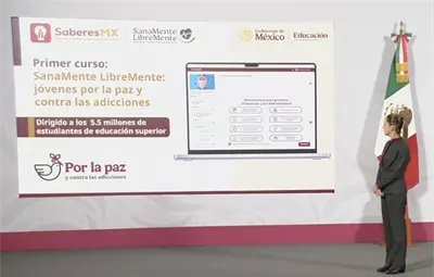 El primer curso de la plataforma SaberesMX es SanaMente LibreMente: jóvenes por la paz y contra las adicciones, que fue diseñado por más de 70 especialistas y está dirigido a 5.5 millones de estudiantes.