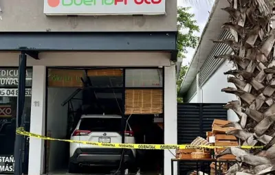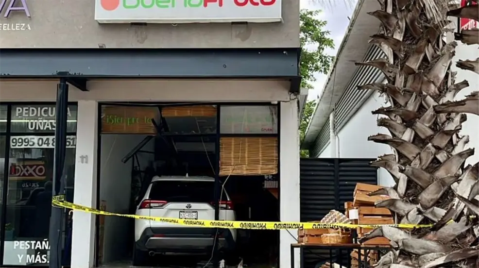 MÉRIDA, Yucatán.- Una mujer perdió el control de su camioneta y se estrelló contra un local de frutas en el fraccionamiento Real Montejo, Yucatán. El incidente ocurrió cuando, al intentar estacionarse en un centro comercial ubicado en la calle 51 entre 72-A y 74, la conductora aparentemente confundió el pedal del freno con el acelerador, lo que la llevó a ingresar con el vehículo al negocio de frutas y jugos.