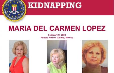 COLIMA, Colima.- Una ciudadana estadounidense nacida en México fue secuestrada en Colima el pasado 9 de febrero, de acuerdo con el Buro Federal de Investigaciones (FBI en ingles).