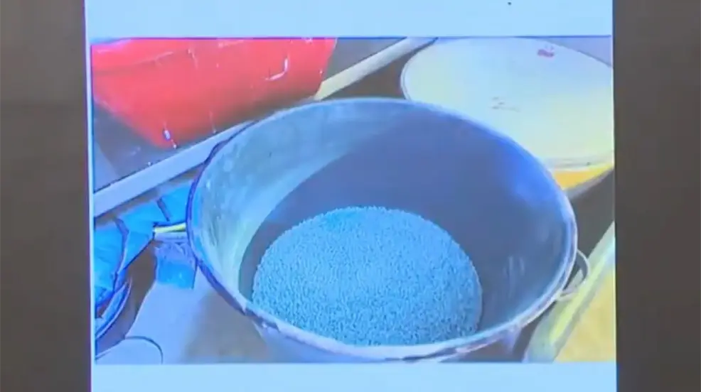 Los soldados allanaron el laboratorio y encontraron alrededor de 630.000 pastillas que parecen contener el opioide sintético fentanilo. También reportaron haber confiscado 128 kilogramos (282 libras) de fentanilo en polvo y unos 100 kilogramos (220 libras) de lo que parecen ser metanfetaminas.