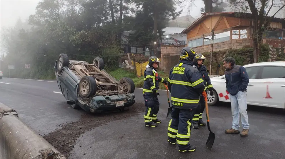 Personal de bomberos acudieron tras el llamado de auxilio en los números de emergencia. Además, paramédicos valoraron al conductor quien solo resultó con lesiones leves y no amerito un traslado a hospital.