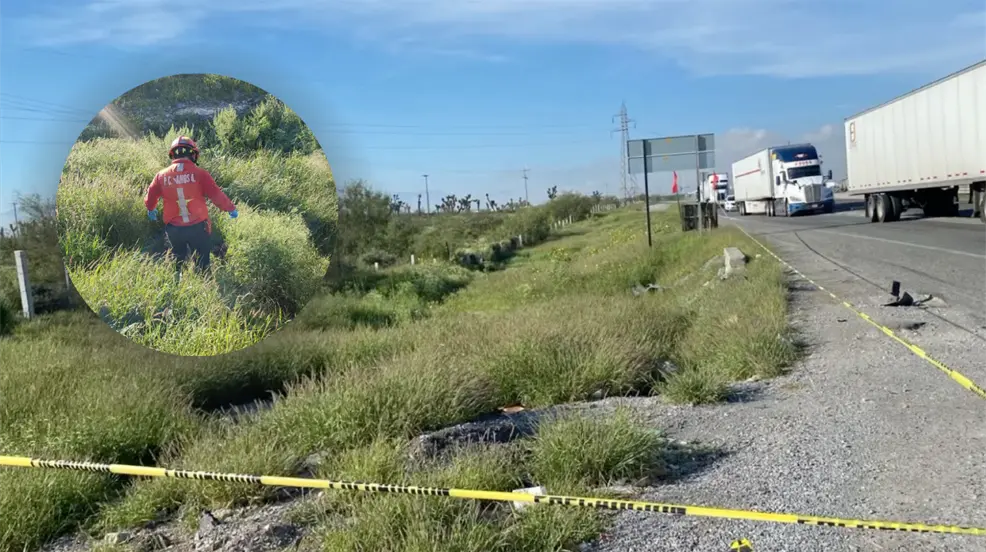 El primer accidente ocurrió en el kilómetro 32, cerca del ejido Higueras, en los carriles con dirección a Monterrey. Un hombre de aproximadamente 55 años fue atropellado por un tractocamión, según reportes de testigos al 911. Tras el impacto, varios vehículos lo arrastraron, lo que dificultó su identificación inmediata. El conductor responsable huyó del lugar.