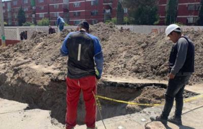 Ya iniciaron las obras para arreglar este hundimiento que fue provocado por la red de drenaje que colapsó, trabajadores del Sistema de Agua Potable, Alcantarillado y Saneamiento de Ecatepec (SAPASE) comentaron que ya fueron colocados los nuevos tubos de drenaje, a los que solo falta alinear y sellar.