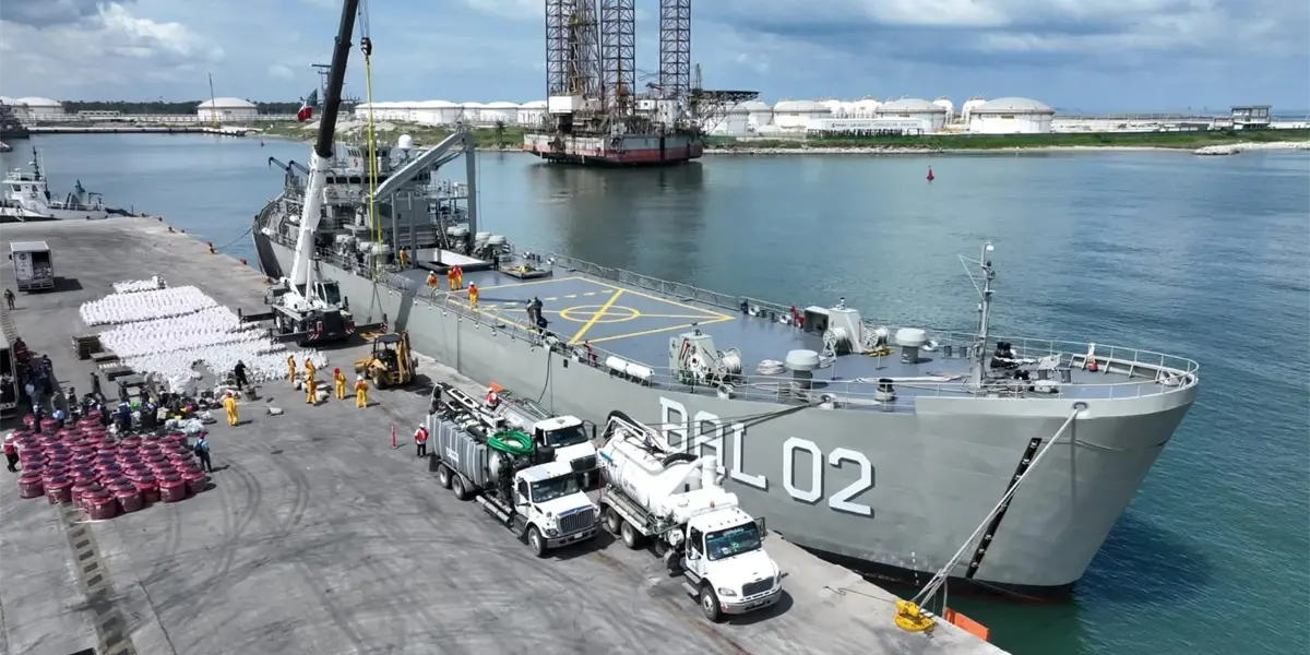 Las autoridades en Tabasco enviaron más de 40 toneladas de ayuda junto con maquinaria pesada a través de un barco de la Marina Armada de México el cual salió del puerto de Dos Bocas en el municipio de Paraíso con destino a Tuxpan Veracruz.