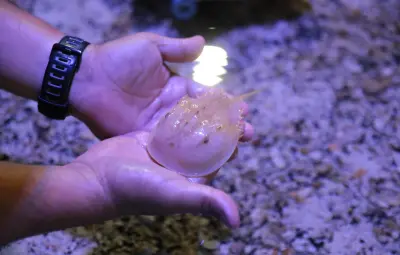 NUEVO AREDO, Tamaulipas.- El Acuario de Nuevo Laredo cuenta con nuevas especies que la población puede conocer desde ahora pues recientemente llegaron cangrejos cacerola, almeja flama, camarón limpiador y bandeado, cangrejo ermitaño y caracol margarita.