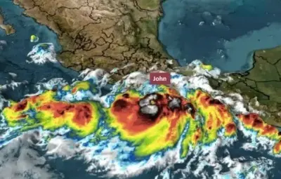 La amplia circulación de la tormenta tropical "John" está generando lluvias muy fuertes a puntuales extraordinarias, vientos intensos y oleaje elevado en el occidente y sur del país.