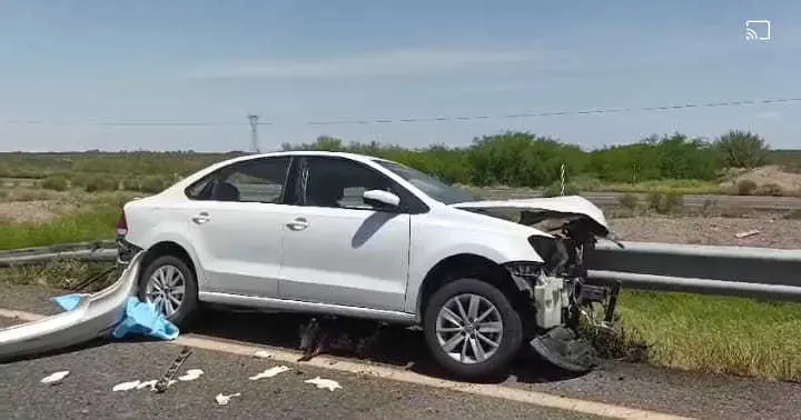 PARRAS, Coahuila. - Un lamentable accidente ocurrió este 10 de agosto en la carretera Saltillo-Torreón, a la altura del ejido El Mimbre, donde un automóvil Volkswagen Bento terminó incrustado en una barra metálica tras perder el control del volante. Las primeras investigaciones apuntan a que el conductor circulaba a exceso de velocidad, lo que habría provocado el fatal desenlace.