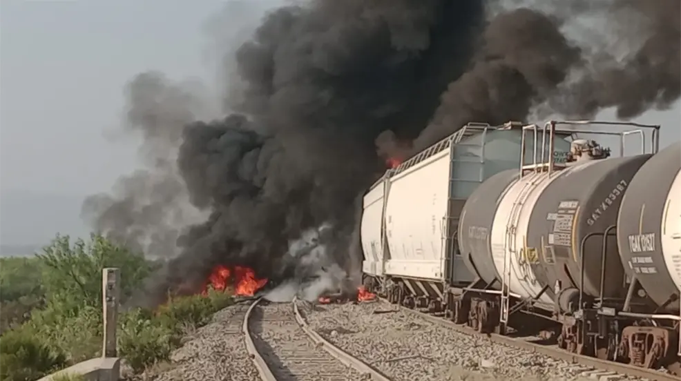 Se trata de un incendio provocado por la colisión entre un tráiler cargado de mármol, contra un tren de Ferromex que transportaba gas propano, lo que resultó en el siniestro.