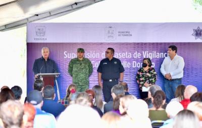 TORREÓN, Coahuila.- El alcalde de Torreón, Román Alberto Cepeda González, llevó a cabo una inspección en la caseta de vigilancia de la Policía Municipal ubicada en la colonia Valle Dorado, la cual juega un papel crucial al brindar servicios de seguridad a seis colonias y vialidades en la zona.