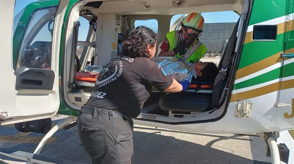Paramédicos en coordinación con la tripulación del helicóptero Jaguar 2, trasladaron de emergencia a un niño de 9 años de edad que sufrió quemaduras con agua caliente de primer y segundo grado.