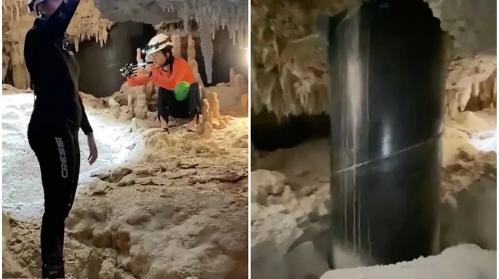 DChristy encontró las columnas de acero en el complejo de cuevas conocido como Aktun Túyul, cerca de la localidad de Xpu Ha. Estas columnas forman parte de un tramo inacabado del tren que conecta Cancún con Tulum. La empresa militar encargada de la construcción del tren no ha respondido a las solicitudes de comentarios hasta el momento.