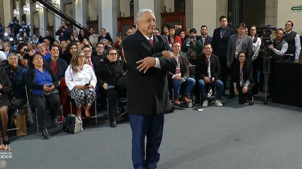 El presidente ingresó de forma alegre al Salón de Tesorería del Palacio Nacional, con su ya tradicional frase: “¡ánimo!”, acompañada de una risa. Luego de esto agradeció a las y los presentes de haber participado “por casi 6 años” en sus conferencias.