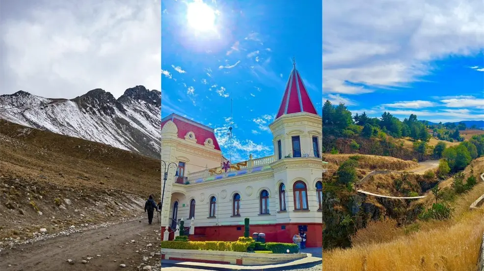 - La primera, “En el Corazón Mexiquense”, recorre el Valle de Toluca e incluye el Nevado de Toluca, el Zoológico de Zacango, y sitios arqueológicos como Tenango del Valle y Calixtlahuaca. También podrás visitar los pueblos mágicos de Metepec y la Marquesa.