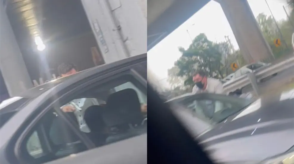 En la grabación, se observa a un hombre con cubrebocas abordar un BMW gris y amenazar al conductor con una pistola para robarle sus pertenencias. Una testigo que viajaba en otro vehículo logró filmar el incidente, y en el video se escucha una detonación de arma de fuego mientras ella exclama sorprendida.