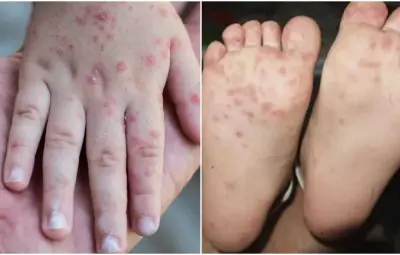 - Salpullido rojo en las manos y pies que puede convertirse en ampollas e incluso aparecer en otras zonas como el área genital.