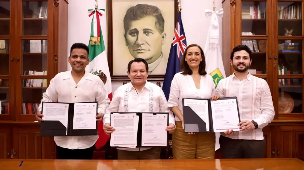 MÉRIDA, Yucatán.- El gobernador de Yucatán, Joaquín Díaz Mena, lideró la firma de un convenio con la empresa tecnológica australiana Getmee, marcando un paso significativo en el desarrollo profesional de los jóvenes universitarios del estado. Este acuerdo posiciona a Yucatán como pionero en la implementación de tecnología avanzada e inteligencia artificial para mejorar la empleabilidad y las habilidades de sus estudiantes, fortaleciendo su preparación integral en un entorno globalizado.