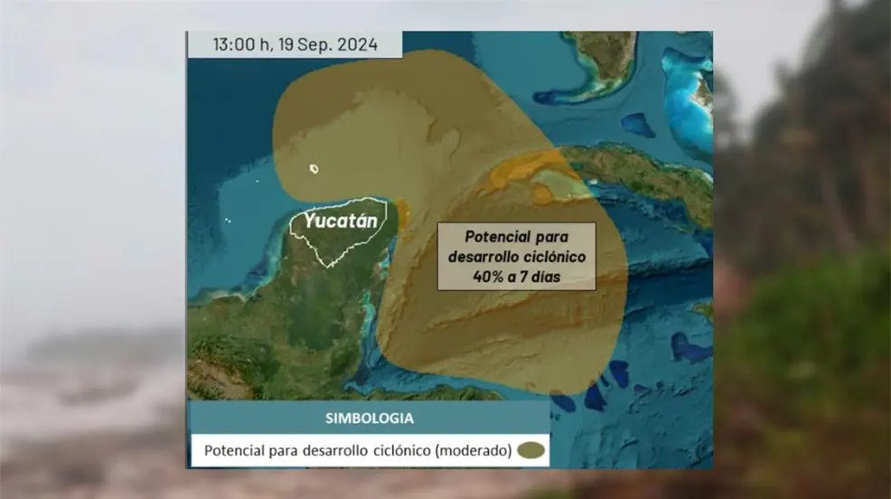 A partir del lunes 23 de septiembre, se espera un incremento en el potencial de lluvias intensas en el noreste, sureste y centro de Yucatán. Estas lluvias podrían intensificarse dependiendo del comportamiento de la zona de baja presión, que podría seguir una trayectoria hacia el norte, sobre el Canal de Yucatán, o hacia el noroeste.