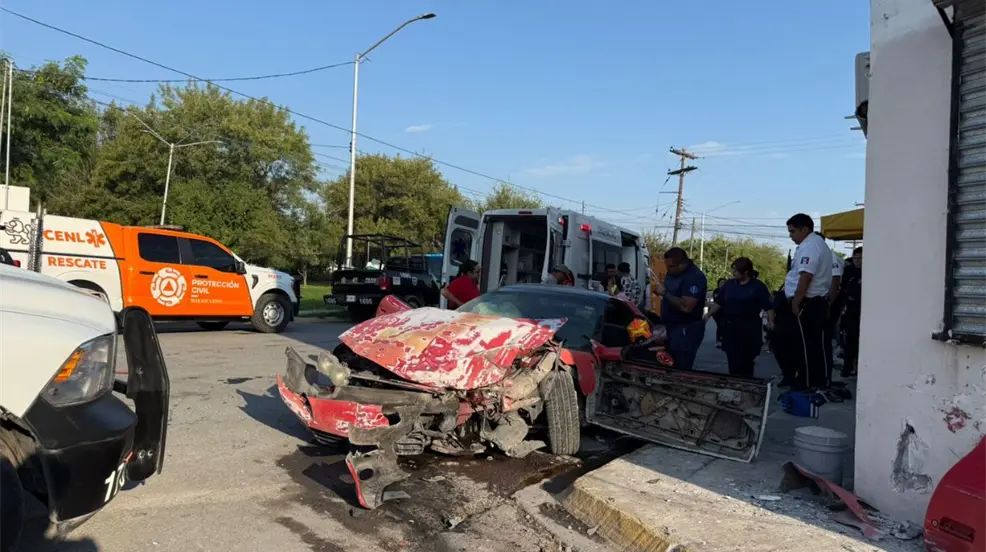 Los elementos de Protección Civil Nuevo León confirmaron que el accidente se debió al impacto de un automóvil contra una vivienda en el cruce de Matancillas y Candelaria.