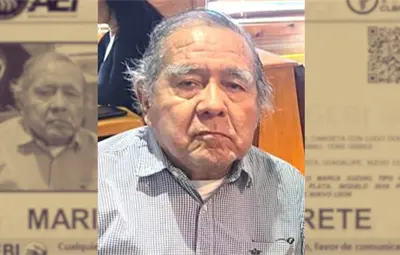 La Agencia Estatal de Investigaciones (AEI) emitió un reporte de búsqueda para localizar a Mario Alor Alderete, adulto mayor de 82 años que fue visto por última vez el 7 de diciembre de 2025 en la colonia Nueva Linda Vista, en el municipio de Guadalupe, Nuevo León.