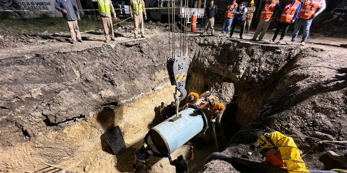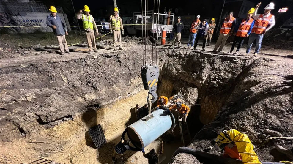 Tras la ruptura de la línea principal en Guadalupe, Agua y Drenaje intensificó trabajos en la zona y ya cuenta con la tubería de reemplazo.