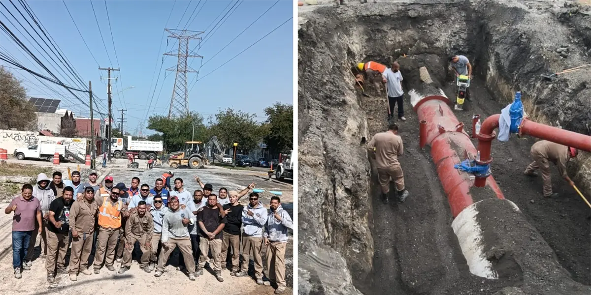 Tras la mega fuga en Guadalupe, se completó el relleno de la zanja y se normaliza el suministro de agua en la zona.