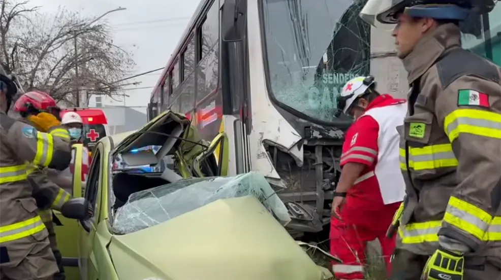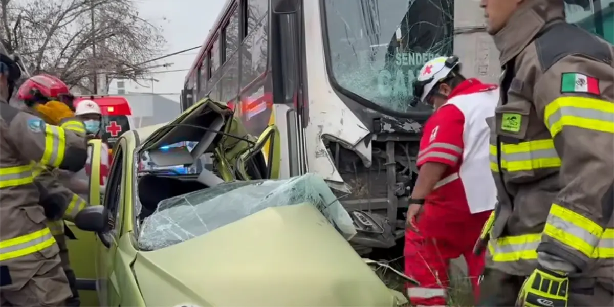 Una mujer muere en Monterrey tras un choque con un camión urbano; el accidente fue captado por una cámara del sistema C4.
