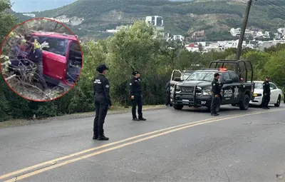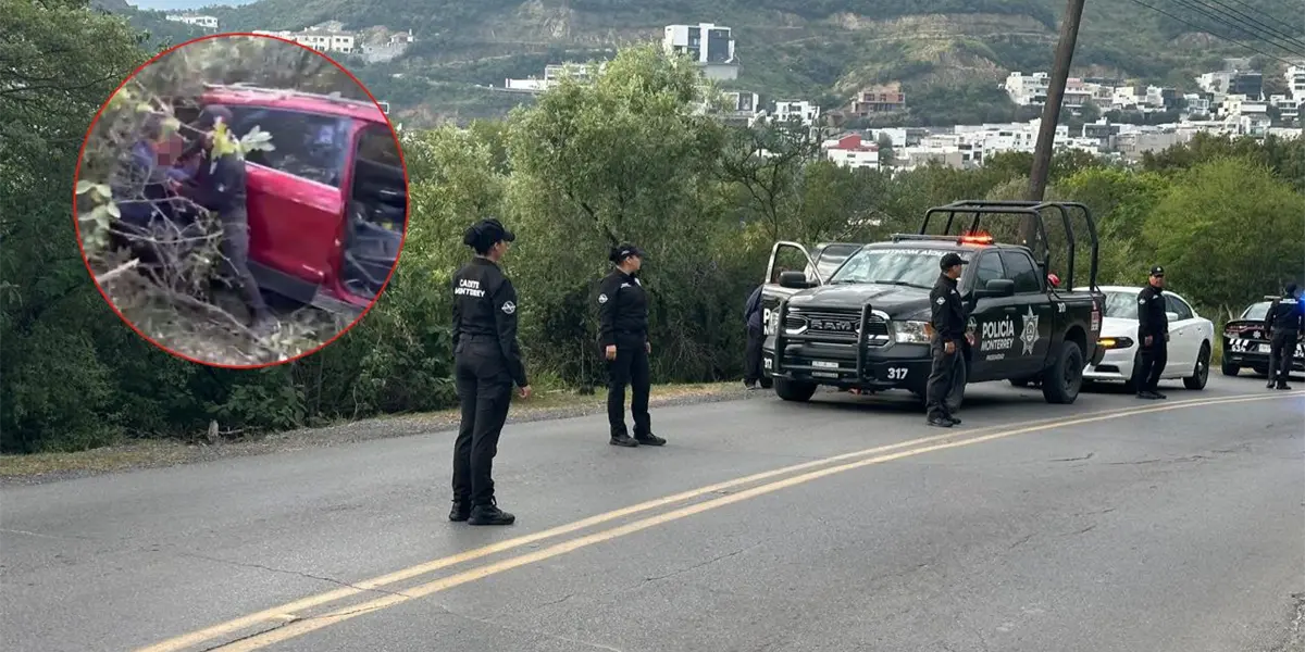 Un grupo de cadetes y oficiales de la Guardia Auxiliar de Monterrey rescató a tres personas que viajaban en un vehículo que cayó a un barranco, a la altura de la colonia Los Encinos, cuando se dirigían al Panteón Funeral Guadalupe.