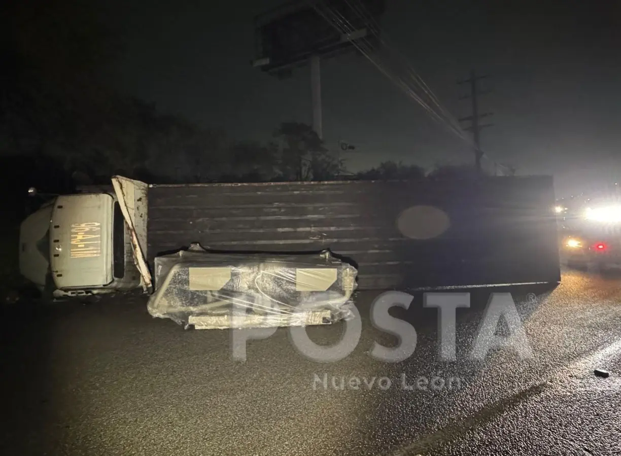 La volcadura del camión provocó un serio caos vial debido a que se trató de un punto estratégico para el tránsito pesado que circula entre municipios como Apodaca, García y Escobedo.