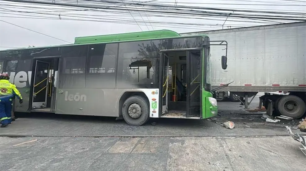 Se registró un choque entre un camión de pasajeros y un tráiler de carga pesada en el municipio de San Pedro Garza García, dejando como saldo 29 personaas lesionadas.