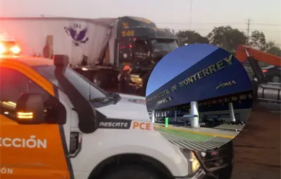 De acuerdo con información de Protección Civil de Nuevo León, el choque se originó cuando un tráiler cargado con estructuras de acero permanecía detenido sobre un punto angosto del boulevard Miguel de la Madrid, un espacio donde está prohibido estacionarse debido al riesgo que representa para el tránsito.
