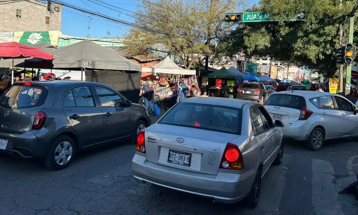 El flujo constante de peatones, transporte público, proveedores y automovilistas que buscan estacionarse ha generado congestionamientos prolongados, obligando a muchos conductores a dar varias vueltas para poder avanzar o encontrar un espacio disponible.