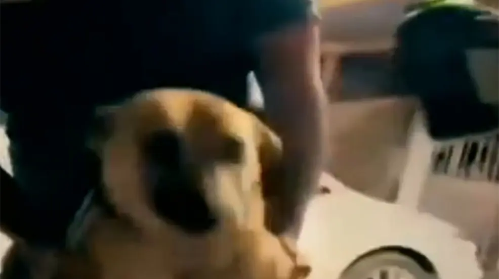 En el video que circula en redes sociales se puede observar cómo un hombre sostiene al perro para levantarlo, otro sujeto le abre el hocico para darle a beber whisky de una botella y un tercera persona graba el video con su teléfono celular; después de unos segundos el perro es liberado.