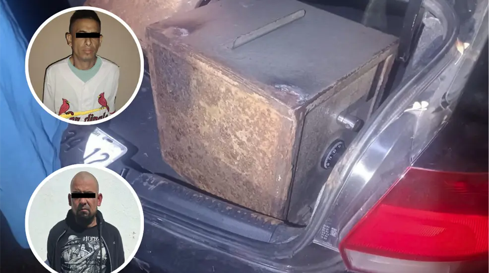Dos hombres fueron detenidos en Apodaca durante una persecución por la posesión de cajas fuertes robadas. Foto: Seguridad Pública de Apodaca