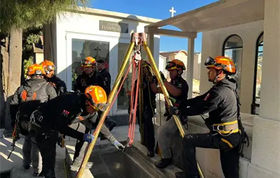 Durante la mañana de este jueves 30 de octubre, la corporación estatal realizó un simulacro de rescate en el Panteón de Dolores, ubicado en la colonia María Luisa, en el centro de Monterrey.