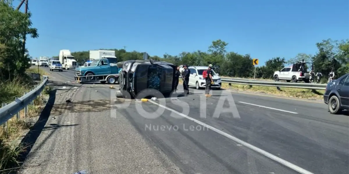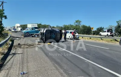 Ejecutan a dos personas en Montemorelos; vehículo termina volcado en Carretera Nacional