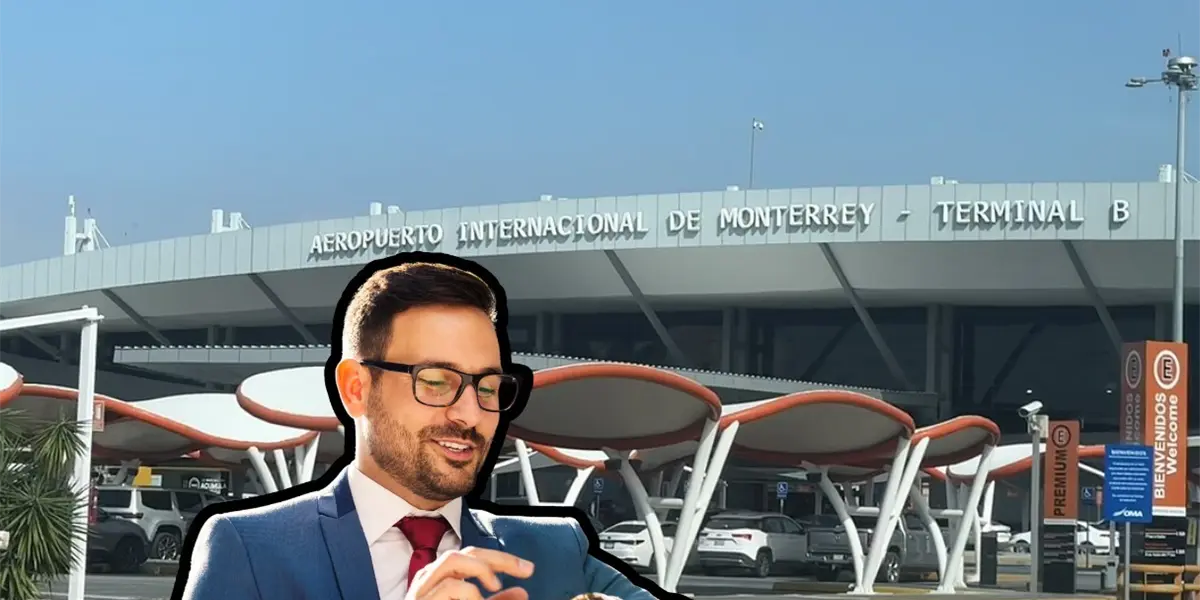 Una persona revisa el tiempo de llegada a la terminal B del Aeropuerto Internacional de Monterrey para ver si va con tiempo a su vuelo. Foto: Canva.